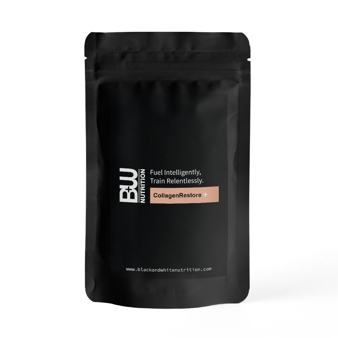 B+W Collagen Restore+ delivers 100% pure Peptan® hydrolyzed collagen peptides — nothing added, nothing hidden. Sourced from premium bovine collagen (Type I), this highly bioavailable protein supports healthy skin, joints, hair, nails, and recovery — from the inside out.